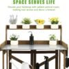 - Raised edges prevent spills; upper shelf holds plants/tools; slatted lower shelf stores soil, pots, or accessories.