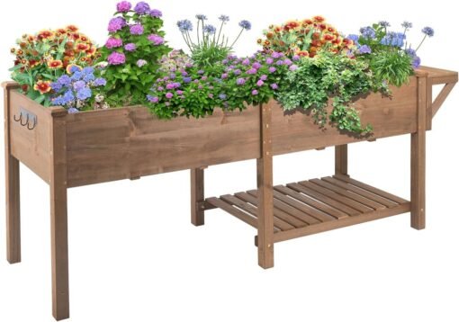 PETSCOSSET Raised Garden Bed: Ergonomic Outdoor Planter with Storage & Drainage