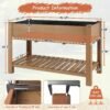 PETSCOSSET GF29 46.65”L Raised Garden Bed Wooden Elevated Planter Box with Legs, Shelf, Brown