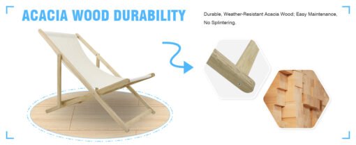 🌿 Durable & Weather-Resistant: Solid Acacia wood frame withstands moisture, UV rays, and heavy use; quick-drying fabric sling resists mildew and dries in minutes.