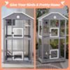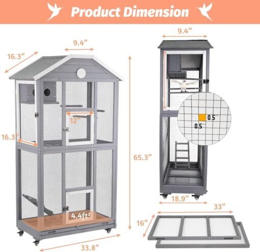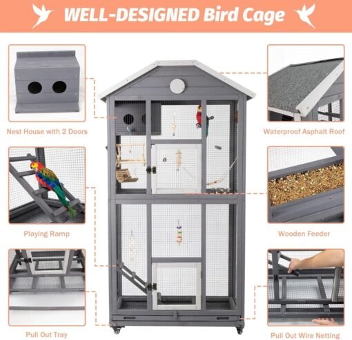 PETSCOSSET PET51 33.8”L Outdoor& Indoor Bird Aviary With Wooden Wheels for Finches Cockatiel Dove, Grey