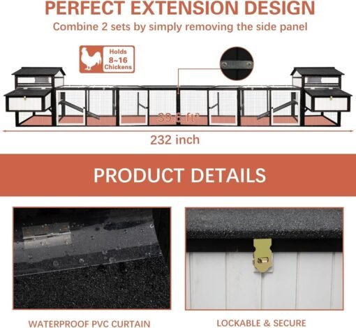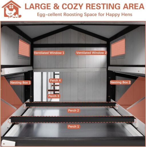 PETCOSSET PET27 116″L Extra Large Chicken Coop with Nesting Boxes Chicken House for 4 Chickens,Black