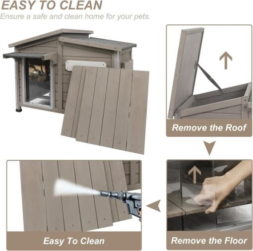 - Hinged roof opens for quick access; removable floor simplifies waste cleanup and bedding swaps.