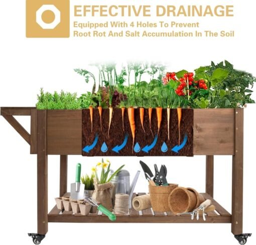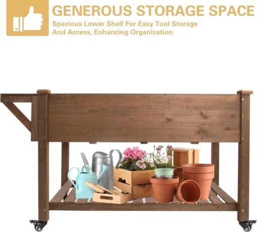 PETSCOSSET Raised Garden Bed: Ergonomic Elevated Planter with Wheels & Storage