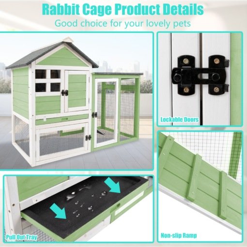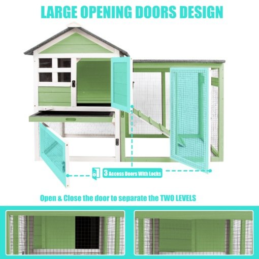 PETSCOSSET Dual-Level Rabbit Hutch: Spacious Indoor-Outdoor Bunny Habitat with Easy-Clean Design