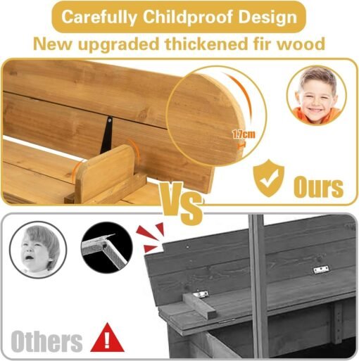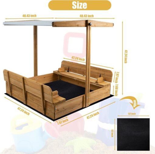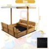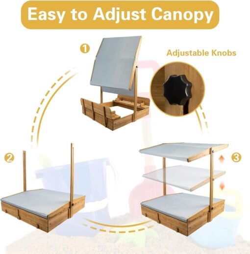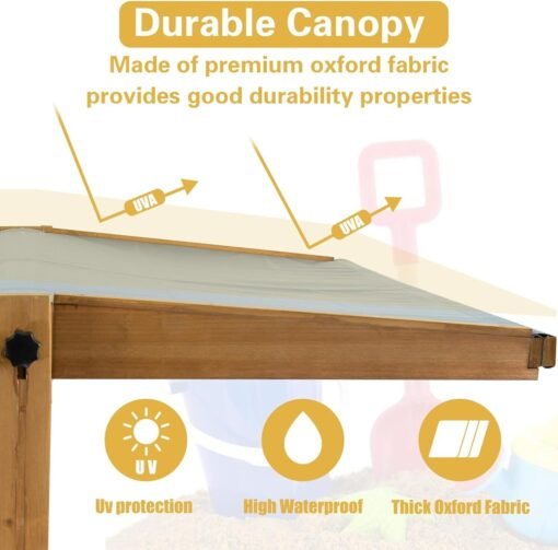 PETSCOSSET GF01 Wooden Sand Boxes for Kids Outdoor with Lid & Canopy,Rotatable Canopy, Adjustable Height,Brown